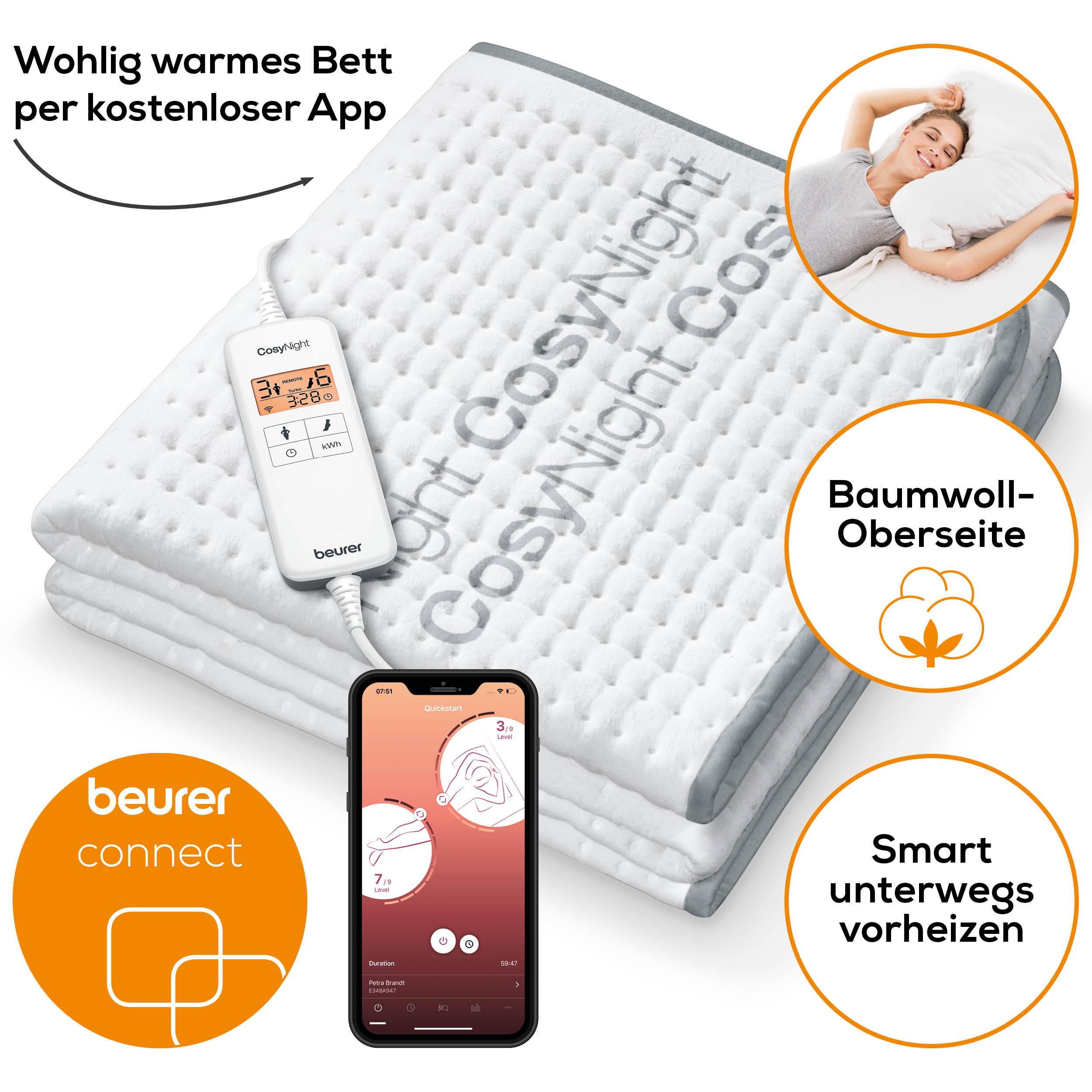 گرما درمانی از کف (تخت و تشک)خیلی موثر تر از گرما درمانی از روی بدن(پتو و لامپ درمانی)به آزاد سازی استرس کمک میکند زیرا وقتی شبانگاه به محل خواب خود میرویم وزن بدن ما روی تشک قرار میگیرد و همچنین در حال خواب کنترلی روی اعمال ارادی نداریم بنابراین بیرون ریزی انرژی انجام نشده و بدن در حالت دریافت انرژی گرمایی از تشک قرار میگیرد که در نهایت راندمان اثر پذیری را بالا میبرد.تشک حرارتی UB190 BEURER کاملا هوشمند است و میتوانید آن را با نرم افزار BEURER COSYNIGHT توسط WIFI به گوشی خود وصل نموده و کنترل کنید به این صورت که قبل از رسیدن به منزل آن را برای گرم شدن روشن کنید و یا اگر فراموش کردید آن را پس از ترک منزل یا ویلای خود خاموش کنید نگران نباشید و از راه دور با گوشی خود آن را مدیریت کرده و حتی خاموش کنید.